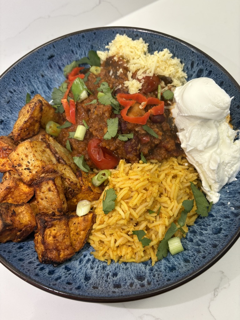 Cajun spiced chicken served with vegetable arrabiatta wholewheat pasta and tenderstem broccoli