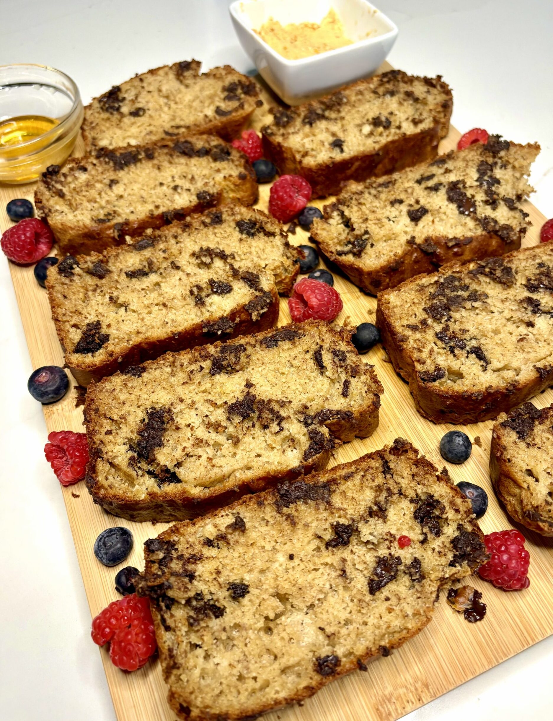 Chocolate Chip Banana Bread Served With Espresso Butter