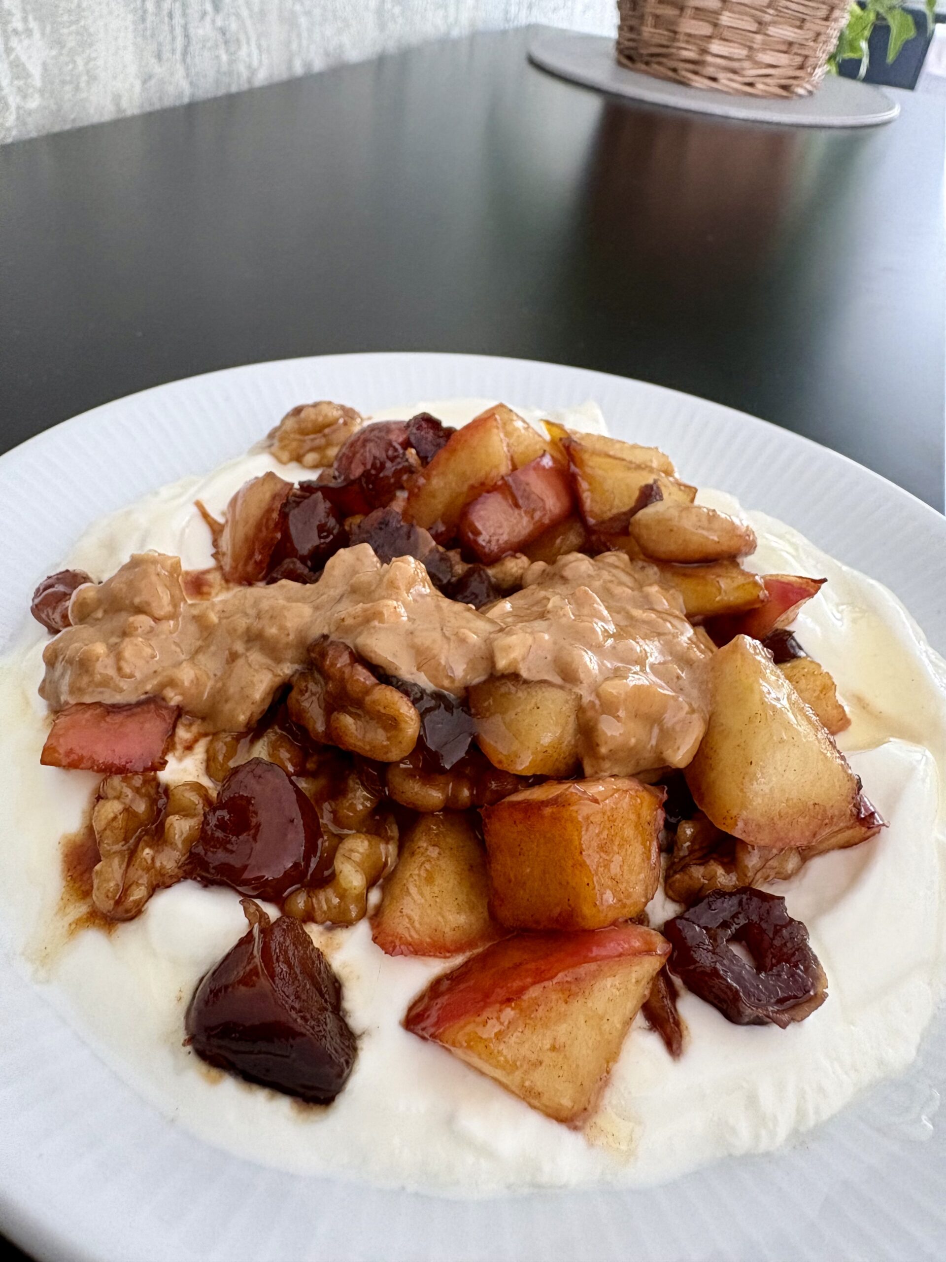 Spiced Apple, Nut, Date And Yogurt Plate